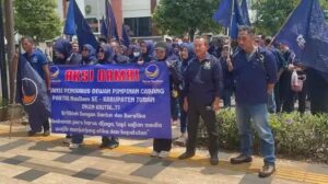 TUBAN – Gelombang protes terkait pemberitaan nasional mulai merembet ke daerah. Sejumlah kader Partai NasDem Kabupaten Tuban menggelar aksi demonstrasi di depan Kantor DPD NasDem Tuban pada Rabu (15/4/2026).